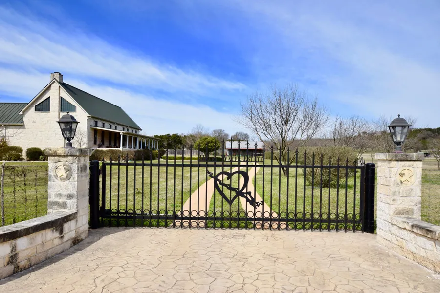 Southern, TX Style home nestled in Johnson Creek Valley on 9.5+ lush AC with views of surrounding hills and dramatic bluffs. Stately white columns adorn the 20x70' sprawling porch beneath a deep overhang. Enter into a spacious stone-clad gallery, opening into the fabulous great room boasting, high wood ceilings, massive rock fireplace and interior rock work, rich wood floors, large, plentiful windows throughout, family-friendly great room and beautiful kitchen that flow into a game/recreation room with fireplace & french doors open to a covered porch, pool, and pavilion. The elegant Master suite features a rock fireplace, high ceilings, His and Her walk-thru shower, large closets, and soaking tub. The window clad dining room offers outdoor views, and a stairway leading to 10x30' loft.
