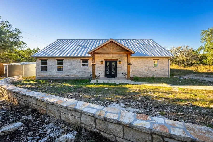 Hill Country Beauty - This custom 3 bedroom & 2.5 bath limestone rock home is nestled in 2.75 acres of natural beauty in Guadalupe Ranch Estates in Hunt, Texas. Upon entering, you'll be drawn to the amazing view from the light-filled open concept living area, featuring a vaulted ceiling and bright, modern kitchen with quartz countertops. Split bedroom plan provides plenty of privacy, and a spectacular 890 sq ft patio with 10' fireplace is perfect for entertaining. Comes with water well and 16K gallon rainwater catchment with purification system. Enjoy 3 homeowner parks with river access for swimming, fishing and kayaking.