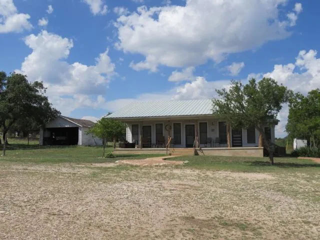 Turn key hunting/weekend place. The house is the original Leinweber homestead that has been partially restored. There are multiple hilltop building sites to build your dream home. This gorgeous rolling ranch offers hill top views, nice draws and a lot of large oak trees. White-tail, axis, turkey and pigs for the hunter. The native grasses are great for livestock and horses. The house has a large rock fireplace, original hardwood floors, and original built-in cabinets in the dinning room. The outdoor living area has covered sitting area, bar, and converted water tank that is used for swimming. The front of the house has a full length covered porch that catches a lot of breeze. Along with the original house, two of the original barns are still standing and could be restored to their original glory. All of this and the convenience of being 35 minutes from Kerrville.