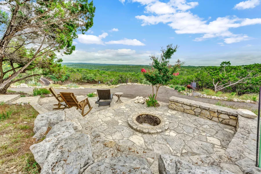 Check out the views from this stunningly renovated ranch Hill Country home! All new flooring, appliances, fixtures and countertops.The main house has multiple decks and patios for outdoor enjoyment. There is also a cute guest house for family or friends. Some of the numerous amenities include a built in BBQ pit, outdoor shower, an RV pad with hookups, newly resurfaced roads and a rifle/pistol range. The property boasts tons of varieties of wildlife, and comes with several feeders. Enjoy hiking on the peaceful trails of this beautiful, game managed, Ag exempted property. The development is gated and private.