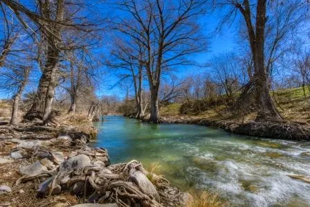 68.41 Hill Country Acreage, with 800 + feet of frontage on the Guadalupe River, offering 75 acre feet of senior water rights, 2 pivots, nice 2100+/- sq. ft. 2 bedroom, 2 bath rock home, with 24 x 24 guest quarters. Owner currently runs 60 heifers in the summer and 50 - 75 during the winter. This place is an excellent site for a horse training facility: large barn, pens and available areas for arenas and or track. River front area affords space for additional stalls and pens. Located between Center Point And Comfort Texas.