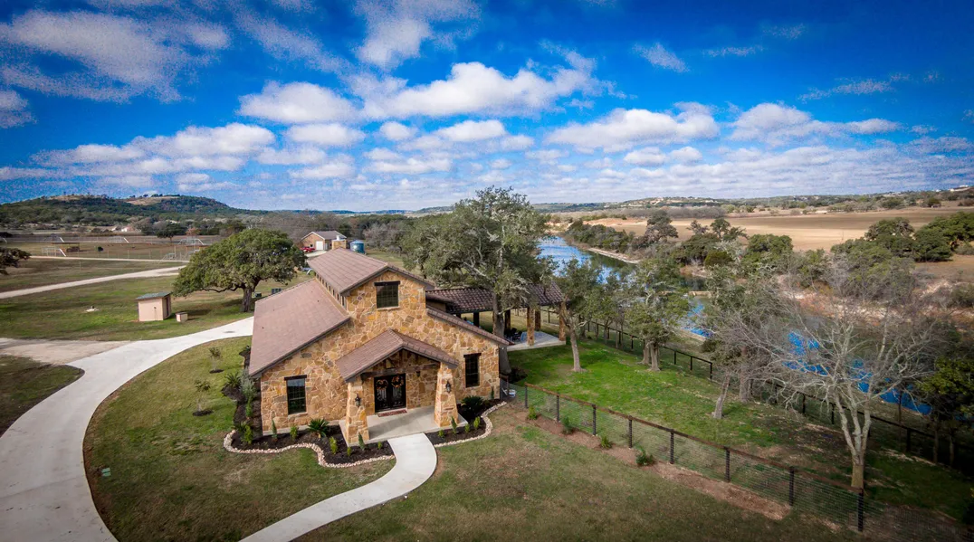 Big Live Water! Great Location! Hill Country Views! Deep fertile soil! This is the perfect Hill Country Ranch! You won't find a better live water ranch with close proximity to town, in an affluent area, with easy access! This 159 acre game fenced ranch is surrounded by large acreage tracts, and has the best live water in the area! There is over 1400 ft of crystal clear Turtle Creek, with most of the water held between two concrete dams, that flows continuously over the dams, for the dramatic live water sound! It would make a great horse or livestock property with its Coastal Bermuda fields and deep fertile soil! It has great views from the proposed hilltop homesite with hundreds of century old Oak trees! Great roads with easy access to all parts of the ranch. An earthen pond to water the livestock and wildlife with irrigation rights out of Turtle Creek for when you need the extra water! Not only is the property perfect, but the improvements are top-notch to fit a ranch of this caliber. A brand new two bedroom, two bathroom entertainment lodge with full kitchen, huge wet bar, dining, and expansive gathering areas to entertain all your friends or clients! It has soaring 26' ceilings with exposed timber trusses, stained trim, hardwood/stone flooring, and custom granite countertops throughout! The lodge overlooks Turtle Creek and has a top-of-the-line outdoor kitchen, protected from the weather by the huge 1300 square ft covered patio, which has more than enough room to enjoy the reason you want a live water Hill Country ranch in the first place! There is a 40'x60' metal building with 30'x60' covered parking. A new 30'x40' building currently being used as a deer facility, that can easily be converted to whatever suits your taste! There are 7 deer breeding pens that can also easily be repurposed or removed at buyers digression! This wildlife paradise is home to Whitetail, Axis, Blackbuck, Fallow, and Sika! The creek is loaded with waterfowl throughout the year, and the Wild Turkey can be heard every morning! You have finally found what everyone has been looking for!