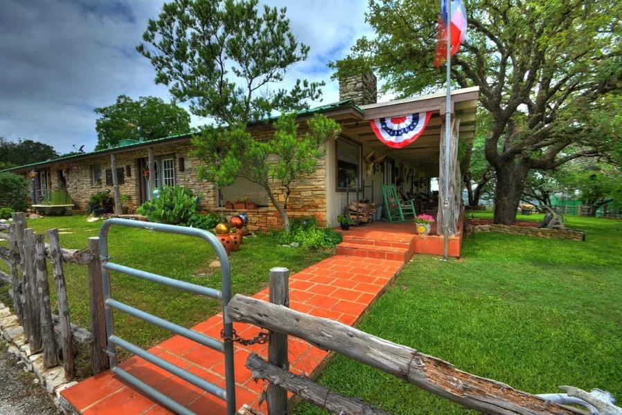 Located 2 miles from Hunt, this incredible parcel offers choice residential, recreation, hunting, & 1.78 acres/160 ft of north fork Guadalupe River frontage in Guadalupe Valley Estates! Structures include: Main House,Office/Gym, Studio,Pool House,Guest House+Guide Suite,Barns,Corrals,1500 SF Workshop w/overhead lifts&3 phase electrical,3/fiberglass & 3/wood blinds. Aoudad/Blackbuck/Whitetail are free grazing/roaming.