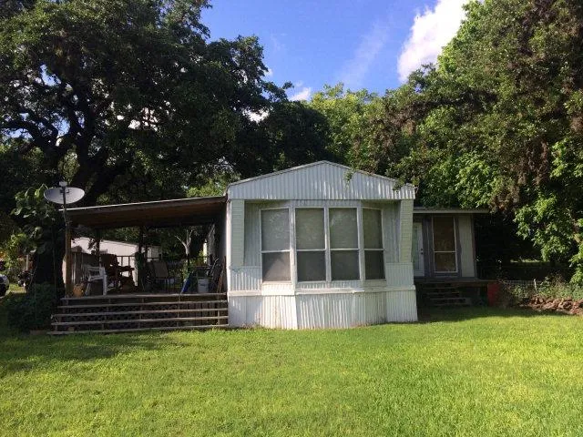 WATERFRONT on The Guadalupe River. Nicely Maintained 1997 Manufactured home with Added Living Room/Fireplace & A Wall of Windows in the Kitchen to Enjoy the Front Yard Scenery of Beautiful Carpet Grass that gently slopes down to The River and Large Established Trees that shade the Home and Workshop. The site built Workshop was a Day Care with Fenced Backyard, but could easily be transitioned into an additional dwelling. There is 87' (Feet) of Riverfront with Shallow Bed Rock Areas perfect for launching Kayaks & Canoes; or Enjoy Deep Areas for Swimming, Fishing or Floating & Relaxing by The River. This Property is convenient to Hill Country Arts Foundation, Texas Hill Country Music Productions and other Various Hill Country Community Activities. Home, Business or Both - Your Choice.