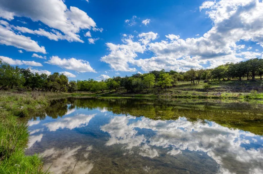 DESCRIPTION: There are flowing springs on the ranch, a beautiful 1-2 acre spring fed lake, Indian campground areas around the springs, and some small caves. Beautiful scenic hills with views for miles and elevations up to 2,100+ ft., good grass cover, and beautiful trees such as: Live Oaks, Spanish Oaks, Cedar Elms, and Black Walnuts. The ranch fronts on a paved road and there is an interior asphalt scenic road that leads you through the ranch, past the sparkling lake, and up to a dramatic hill top where the house sits with views for...