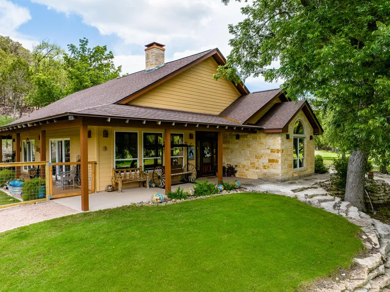 Gorgeous Custom Built Hill Country Home situated on 13.21 acres in the sought after HORIZON Subdivision. The home boasts just under 3800 sq. ft. of living area in the main house with 3 bedrooms and 3 full bathrooms, plus a huge media/game room upstairs. Home is open concept design that everyone desires with an amazing kitchen with sealed granite counter tops. Huge wood beams and interior stonework give the inside so much charm! The exterior of the home is rock veneer and HardiPlank. Also a large greenhouse (concrete floor) with water and electricity. The property also has a detached cozy guest house as well as a large workshop with a 2nd level for more space. Camp Meeting Creek meanders through this wonderful property with a beautiful meadow between the creek and the house with gorgeous mature trees giving you a picturesque setting. So very quiet and peaceful. The Horizon Ranch is a 1040...