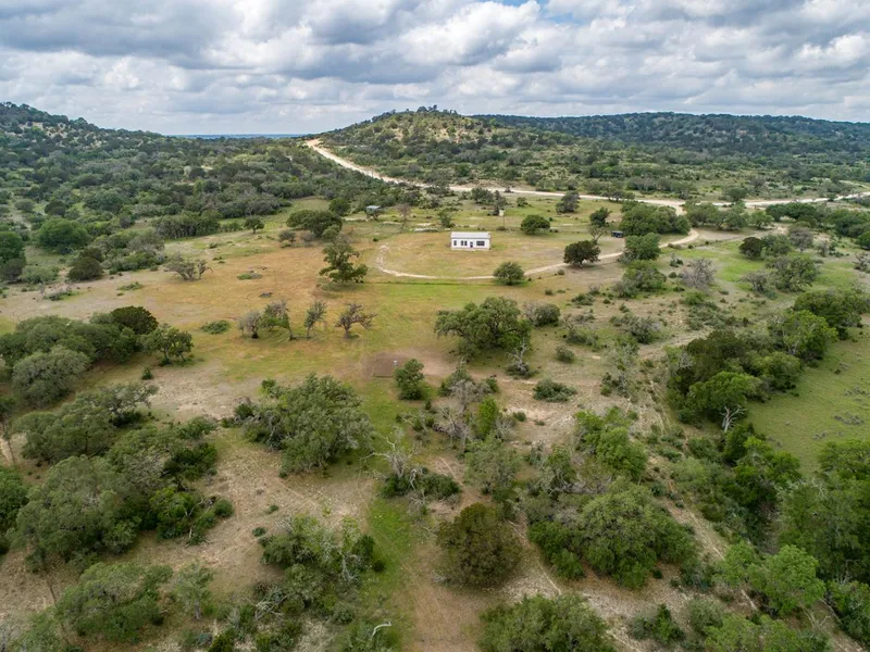 A secluded yet convenient residential/recreational property with classic Hill Country topography and long-range views. This 62-acre tract is part of the 800-acre Hall Ranch that has been subdivided into only 4 tracts to conserve open space. The 1920 sq. ft. farmhouse has 1 bedroom, flex room, and 1.5 baths. This home could be used as a primary space or temporary living quarters while you build your dream home. The property has 140 of elevation change, a wet weather creek/pond area, and is covered with Live Oaks and Spanish Oaks. Sit on the back porch and watch Whitetail Deer and Axis deer at the nearby feeder.