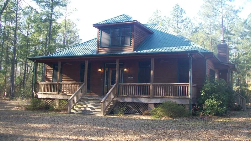 The house was constructed in 2001 by the current owner, one of Camdens Premiere Home Builders, and is of excellent quality of construction. The home boasts 2614 SF of living area, and the cottage design, rustic cedar siding, and reliable metal roofing add to the charm of the property. The sprawling 243 SF front covered porch invites you to enter the foyer through the main entrance of the home, a beautiful front door with sidelights, transom, and leaded stained glass. A wainscoted bedroom/office opens to the left, as does the powder room, and the kitchen to the right. The large kitchen features stain-grade cabinetry with heart pine butcher-style tops, top quality stainless steel appliances, and large farm-style sink with an additional single sink at the bar area. The center island includes a Thermador Range with granite counters and an authentic meat rack fixture overhead. The home is also energy efficient with insulated glass windows and sprayed in insulation that also adds to the structural strength of the home.