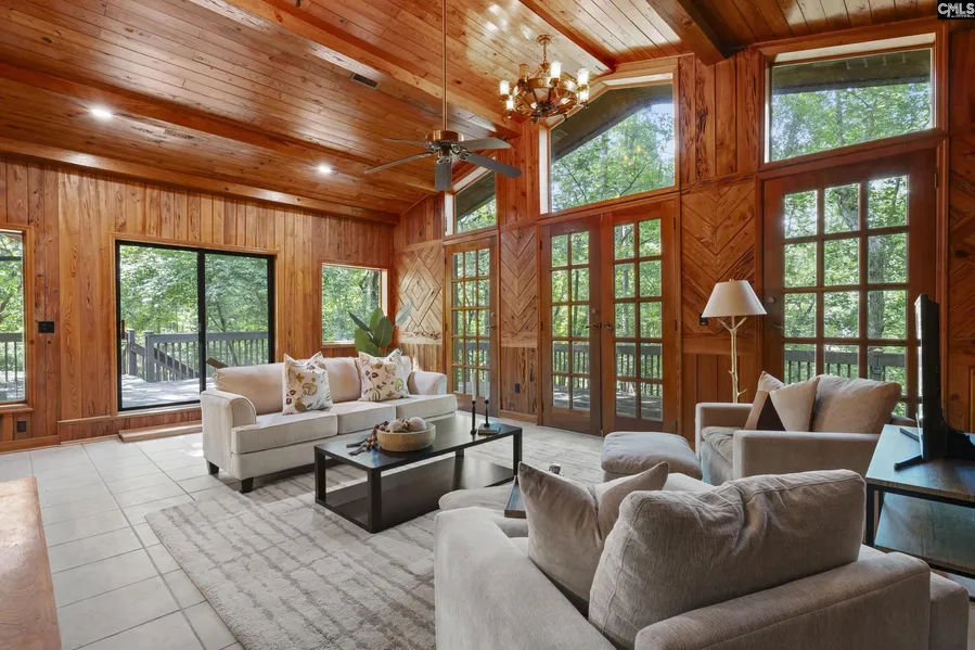 Location, Space, and Character—This Home Has It All! Nestled just minutes from historic Camden, SC, this beautifully updated 4-bedroom, 3.5-bathroom home offers the perfect blend of comfort, convenience, and distinctive charm. With quick access to I-20, you’re just a 35-minute commute to Fort Jackson and within easy reach of Shaw AFB, McEntire, McGrady, and 3rd Army headquarters. Downtown Columbia is only 38 minutes away, making this an ideal location for those who want a peaceful retreat without sacrificing accessibility. Spanning 4,156 square feet, this thoughtfully designed home is ideal for those seeking both space and versatility. The main level features a private primary suite with its own laundry area, a spacious office, and a private balcony overlooking a serene creek. The open-concept layout flows effortlessly from the updated kitchen into the dining area, living spaces, and an expansive sunroom, creating an ideal setting for entertaining. The lower level offers even more living space, featuring a cozy stone fireplace in the den, a large recreation room, and three additional bedrooms—including a second primary suite. With its second kitchen and laundry area, this level is perfect for multi-generational living, guest accommodations, or even a rental opportunity. What sets this home apart are the unique architectural details—petrified wood accents, reclaimed railroad ties, teak wood cabinets, and refurbished ship flooring add warmth and character throughout. Step outside to enjoy South Carolina’s stunning sunsets from the expansive wrapped deck, or unwind on the large screened-in porch—a perfect retreat for rainy days. Situated on 2.4 acres, this property offers limitless potential, with space for a workshop, pool, detached garage, or even a second home for extended family. Vacation at home with your private campsite accessible via a staircase. Enjoy building a campfire, roasting marshmallows, playing in the creek and creating memories with family and friends. Lake Wateree’s public marina is just six miles away. USDA eligible. This home is a rare opportunity to enjoy country living with upgrades and conveniences. Don't miss seeing this one! Disclaimer: