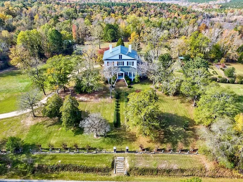 Placed on the National Register of Historic Places, this is more than a home; it is a piece of history, a unique architectural design marking both the time and geographic region. This rare home has six bedrooms, 3 bathrooms, parlor, den, eat-in kitchen, dining room and two expansive porches, front and back. Everything about the home speaks to a bygone era of hand-built quality. Beginning with the brick steps leading to the column-lined front porch, through massive double doors to the great hall entrance, one is awe-struck by the workmanship. Inside, the home has heart pine wide board floors throughout and multiple fireplaces. The main floor has 14 foot ceilings, master suite off the den, prodigious pocket doors leading to the parlor and the dining room, curved wall accommodating the large curved stairway with mahogany handrail, and molding, the likes of which will never be seen again. The upper level has 12 foot ceilings and is comprised of 4 interconnecting bedrooms as well as 2 loft areas. A ground level space opens to the back and includes a mud room, laundry and extra storage space. Throughout the home, one is struck by the space, exhibited by exceptional large rooms, high ceilings and the vast great hall traversing the first floor. Towering floor-to-ceiling windows provide natural lighting and astonishing views of this special land.