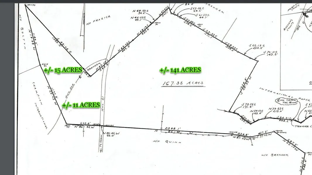 Timber on property with variety of ages including mature. Raw land with rolling topography.