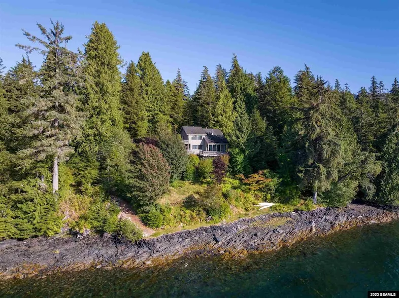 Explore this west-facing oceanfront estate comprised of two contiguous parcels in the serene Clover Passage area with 332 feet of ocean frontage and spanning 2.17 acres of land across from Stack Island. A secluded location, it is accessible by a 20 min boat ride from Knudson Cove. Offered with furnishings and goods onsite as a canvas for realizing your vision of a tranquil waterfront home or development into a lodge experience. Explore the potential of this remarkable property and seize the opportunity to create a haven for guests seeking an immersive wilderness experience. Featuring custom-built structures, including a two-story 1854 sq ft main residence, this off-grid property showcases abundant natural light, high ceilings, and custom picture windows framing panoramic views. The interior layout integrates various living spaces, including 3 bedrooms, 2 living rooms, a spacious kitche...