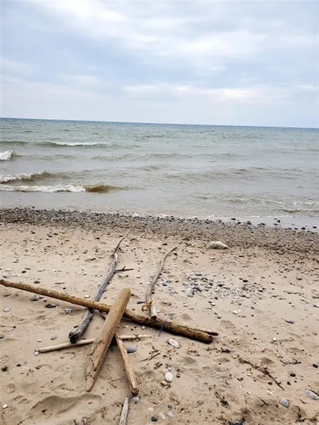 Lake Michigan waterfront property, Hear the waves, enjoy the sunrise & sunset, Build overlooking the Lake Michigan on the bluff portion, walk the beach from your own private access. Over 4 acres per assessor. Come enjoy the Lake front today! Creek divides the property, access to lakefront is thru the woods on a beautiful meandering trail. Currently zoned agriculture & undeveloped Use Caution walking near the bluff.