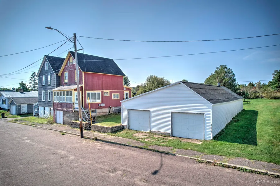 Welcome to this charming 2 bed / 1 bath home nestled in the quaint village of Ahmeek, MI. This home offers a unique layout with plenty of potential for those looking to put their personal touch on a home in the beautiful Keweenaw Peninsula. The living room flows seamlessly into the eat-in kitchen, creating an ideal space for both everyday living and entertaining. The kitchen offers room for a dining area and a wall of built in cabinets. Two bedrooms on the upper level provide comfortable sleeping quarters, along with two bonus rooms for walk in closets/office/flex space. A notable feature of this home is the enclosed 4-season front porch, perfect for enjoying morning coffee or as a tranquil reading nook. Adding significant value to this property is the large (30'x 40') detached 2-car garage. This spacious structure offers ample room for vehicle storage and a workshop area, along with extra storage space in the rear (currently a wood storage room). While the interior presents opportunities for updates and personalization, the home's layout provides an excellent canvas for your vision. The exterior, with its classic Upper Peninsula style, adds charm and character to the property. Located in Ahmeek, this home offers the perfect blend of small-town living with easy access to the natural beauty and recreational opportunities of the Keweenaw. Whether you're looking for a vacation property, or searching for a project home, this Ahmeek residence offers great potential. Don't miss this opportunity to own a piece of Copper Country history and make it your own. Schedule your showing today and start envisioning the possibilities this unique Ahmeek home has to offer!