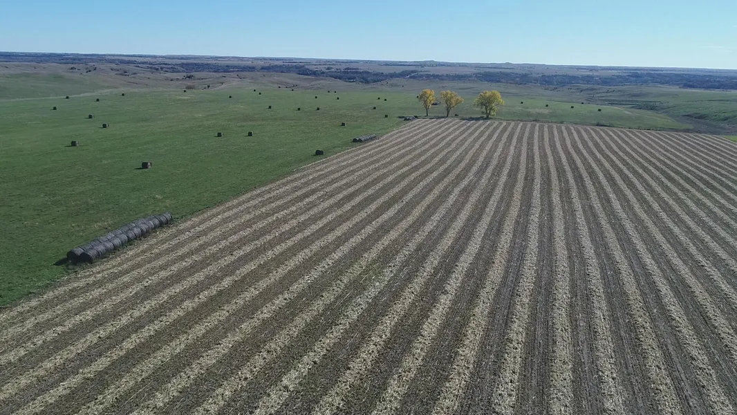 138.29 acres of non-crop. The 2021 crop was alfalfa/grass hay, and hay sorghum. The non-crop ground consists of a pasture. This property does have a working overhead electrical power source. This property has an electric private well, powered by KBR Rural Public Power, thats being used to water livestock. The portion of this property that is being used for livestock grazing does have a fair, 3-strand barb wire fence. This property can be easily accessed from two sides, from a county roads. There is an old house and barn on this property that are both in very poor condition.