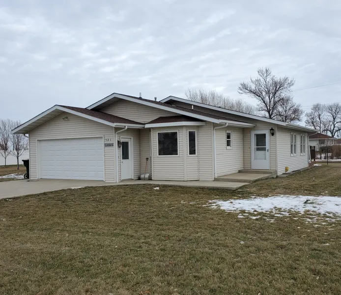 WELCOME HOME to your OWN BEAUTIFUL OASIS and your NEXT HOME. Nothing to do but bring your personal items and move in. YOU MUST SEE this well groomed property and IMMACULATE 1550 sq ft ONE LEVEL LIVING. You won't find another home like this one in the VIBRANT town of Steele, especially on ALMOST 1 acre in town. It is like a Patio home but is on a 4 ft foundation crawl space. The home is a 3 Bedroom with larger closet, and walk-ins, 2 bathrooms. The Kitchen, Dining ,Living room is open concept. There is a 12 x 16 maintenance free deck off the livingroom, where it is beautiful to sit in private and enjoy your evening or early morning coffee. The home has a duel heat pump with central air. water heater is gas. Windows replaced in 2018. Furnace is 2009, but is serviced every year, New Shingles 2019. The whole inside of the home has been professionally painted in the past couple years. A Radon Mitigation system was installed Spring of 2021. You have a well with pump jack in the yard that waters all your lawn and garden, saving on your cost of city water. The attached garage is a nice over size 2 stall, insulated and heated. The Detached Garage is 28 x 36 also heated and insulted . Beside the detached garage is a 16 x 36 gravel camper pad with a 30 AMP for plug-in , a 3rd detached garage is a 16 x 20 for the lawn and gardening equipment, this is attached to a small old house that is great for cold storage. There is a nice maintenance fence to outline some of the property and the rest of the property is outlined with beautiful Lilac Bushes , small new trees have been planted and there is an Apple Tree. This ALL sits on 9 CITY LOTS. You are on your own corner of the block with SO MUCH ROOM AND STORAGE. This is priced to sell call an agent today to view it. DON'T MISS THIS OPPOORTUNITY