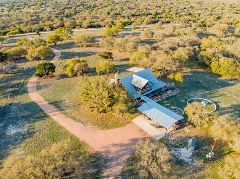 Improvements: The custom built, rustic ranch home features 2 large bedrooms, 2.5 baths, an office, open living area with 20 foot ceilings, and a fully upgraded kitchen. The wrap-around porches and 2nd floor balconies allow you to enjoy the hill country sunsets and breeze. The kitchen features granite countertops, stainless steel appliances, and large bar that make it kitchen perfect for entertaining. The openness of the living area is well suited for large groups or family gatherings. Both bedrooms are very large and can accommodate multiple families and guest. The loft is currently used as an office with a balcony that looks out over the South for many miles. There is plenty of storage in the walk in closets and utility/laundry room. The standing seam metal roof is only 11 years old and in great condition. The large carport provides parking for 3 large vehicles, tractors, and ranch equipment. The automatic entry gate allows quick access down the crushed-granite entry road.