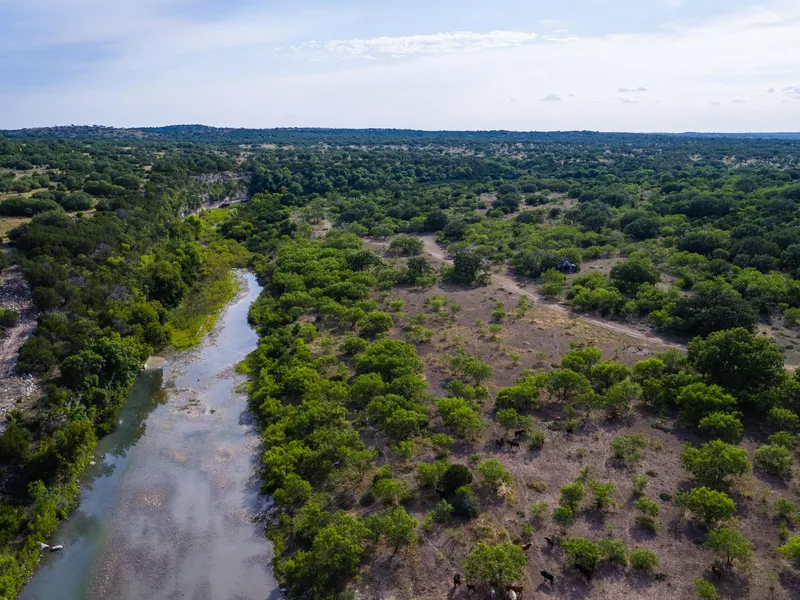 West Bear Creek meanders through the ranch for approximately 15,000 feet, carving through the limestone hills creating amazing vantage points and providing seasonal water, and depositing deep pools of water along the northeast corner of the ranch. The riparian area of this creek, which is a tributary to the North Llano River, is undisturbed and natural, creating an ecosystem rich in various species of flora and fauna that inhabit this land. Interesting rock formations, caves, and cliffs are found along the creek, and in other areas, the bed widens out, providing several interesting and beautiful landscapes along its path.