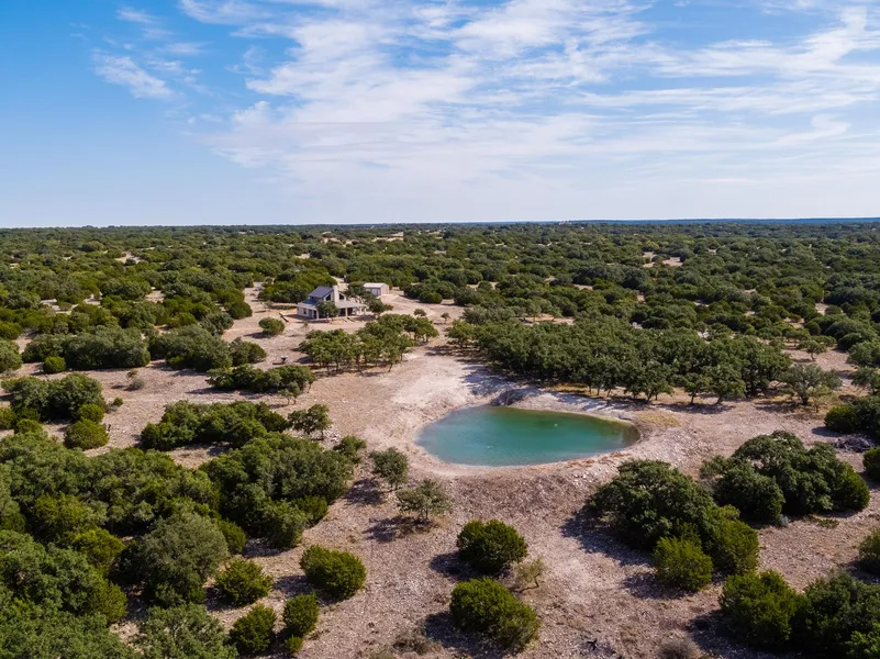 Land: The Kimble Co. Exotics Ranch offers 399 +/- acres of diverse Hill Country topography and landscape with lush dry creek beds, bottom land with deep soil, and tremendous views from the 70 + ft of elevation change. The ranch has great cover for the roaming wildlife with strategic brush clearing around large Oak Mottes and the two well-supplemented ponds. Red Oak, Live Oak, and Shin Oak grow in abundance on the ranch with additional cover provided by Mesquite and the thinned-out Cedar. There is an extensive road system in place for comfortable enough to travel to blinds and feeders in your truck or ATV.