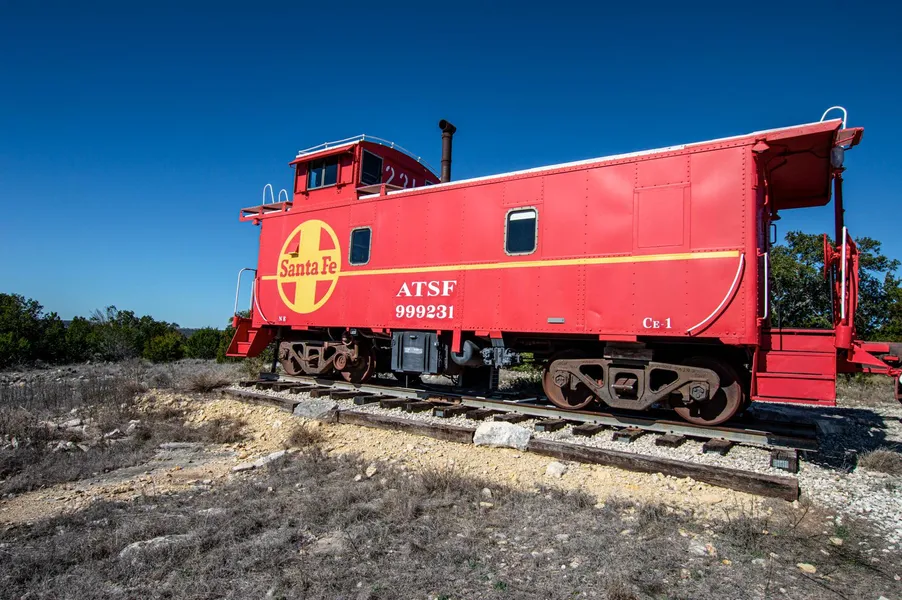 Improvements: This ranch gives you the rare opportunity to own a very interesting piece of history with the Santa Fe Railroad Caboose that has been restored and converted into lodging for hunters. The caboose is situated atop the highest elevation point on the ranch, allowing the owners to enjoy the southerly views of the Texas sunsets. The waycar was built for the ATSF Railway between 1931 and 1942 and was refurbished in 1968 to meet the DOT requirements and was given the ID number 999231. After being purchased from the Santa Fe Railway, this caboose was restored and moved to Los Angeles. The owner of the ranch purchased the caboose in 2013, where the caboose made the 1,300-mile trip to San Antonio on the Union Pacific Railway. Now, the caboose sits on the 50 acres and comes equipped with plumbing and electricity, sleeping area for 3, bathroom, shower, and water storage tank filled by the water well. The rear cupola makes for one of the most unique hunting stations you will find. The caboose is in fantastic condition and was built to withstand the elements. An Edwards Aquifer water well with a 1,500-gallon poly tank to supply water to the caboose and the pond. There is a 20 ft shipping container for storage along with a quality hunting blinds and feeders that will convey with the property.