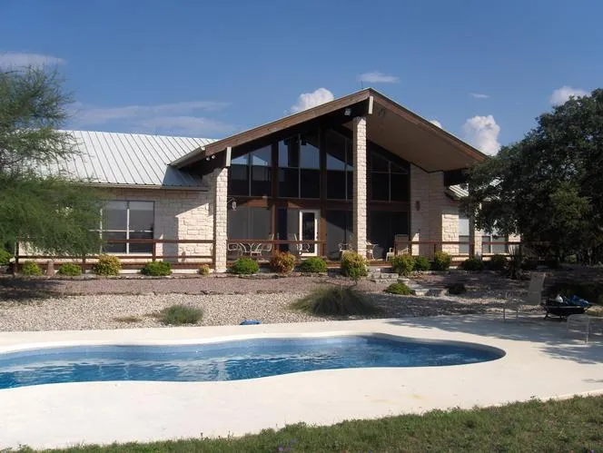 House: Ranch style Austin stone house with vaulted ceiling in living/