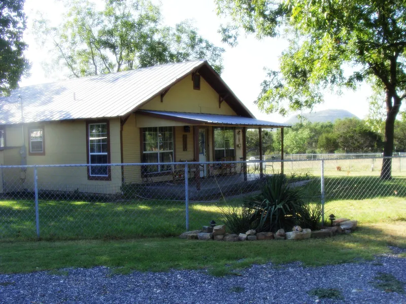 There are beautifully landscaped grounds around this 2/1 country charmer, that's been refurbished inside and out. Exterior has been painted and a nice open deck has been added, just off a bonus room at the back of the home. Mature pecan trees shade the large yard, views of a distant high hill and large wooded back neighbors make for lots of privacy. Deer and turkey come to the water trough in the evenings. There is a covered front porch the length of the front of the home. The home, workshop with large covered carport, old rock feed storage and well house have metal roofs. The 4.51 acres is partially fenced with ...
