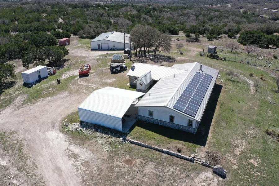 This beautiful property is located just 45 minutes west of Fredericksburg and 45 minutes from Kerrville. Tucked away 20 minutes outside of Harper located in both Gillespie and Kimble counties. This is the ultimate Gentleman's ranch or Homestead to get away from it all. The 186 acres gives you plenty of room to do what you want. The land is a mix of rolling hills, creek bottoms, and flat areas with large oaks and some cedar trees. The main house is situated at the highest point on the property offering panoramic views of the hill county. The sunsets from the back porch are one of a kind! The main house is 2404 sqft 3/3.5 built in 2005. The house is an open living and kitchen concept with a large rock fireplace in the living room. Solar panels keeps the electric bill under $60 a month even during the summer months. The water well pump was just replaced after the week long freeze. There is also a 2500 gallon water storage tank. Down from the house is a 40x60 2400 sqft shop with roll up doors on either end. The shop has water and electrcity with an air conditioned office and a full bathroom attached. A drain in the middle of the shop with a winch makes it a perfect place to clean game from the ranch. Off of the shop is a large covered area perfect for parking ranch toys and equipment. There is also a 1 bedroom cabin located on the property with separate electrical, septic, and a water well. There is a separate entrance through an easement to the back half of the property where the cabin is located that could be separated if desired. There is plenty of game on the ranch including Whitetail deer, hogs, and turkey. There are 5 blinds around the ranch with feeders. A network of roads gets you to any part of the ranch you want. Enjoy low taxes with a wildlife exemption all ready in place. This ranch has it all. Take a closer look of the land with the link of the drone footage.
