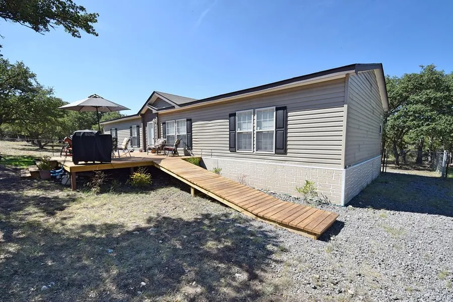 Very clean and spacious double wide on 5 acres in Harper School District. This home features 4 bedrooms, 2 baths and a very nice open layout, with an additional space that would be great for an office or second living room (currently being used as 5th bedroom). Oversized closets give an abundance of storage in the home. The master ensuite features a shower and a soaker tub, as well as double sink vanity. Brand new front and back porches. Bring your animals, as the property is fenced and cross-fenced, has several storage buildings, a chicken coop and a barn/workshop currently used for 4H projects. The aerobic septic system is like new and so is the well, with all new casing and equipment, as well as a 1,500 gallon water storage tank. Many oak trees on the gently rolling terrain.