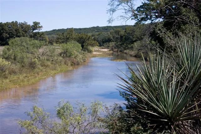 LAND: What a classic Hill Country look this fine ranch has, with vast plains of fertile bottomland rising to cliffy hills, laced by interesting canyons! The ranch is well-presented from the highway, and possesses quality curb appeal, with bottomland throughout the hwy. frontage, creating easy access at any point so desired. Topographic relief is about 350’ from low point of Bear Creek exit to a high hill on western boundary, and distant vistas are had from numerous high points.