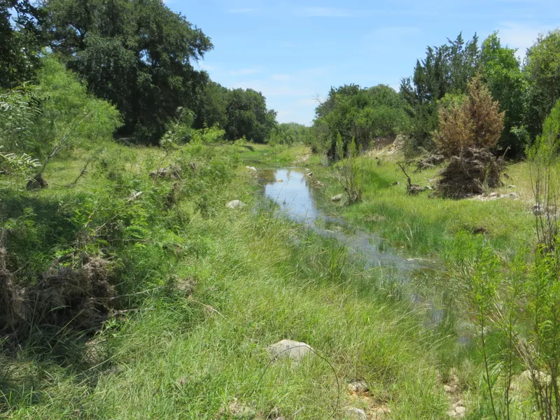 Axis and Whitetail deer to hunt, large Oak trees along the creek.