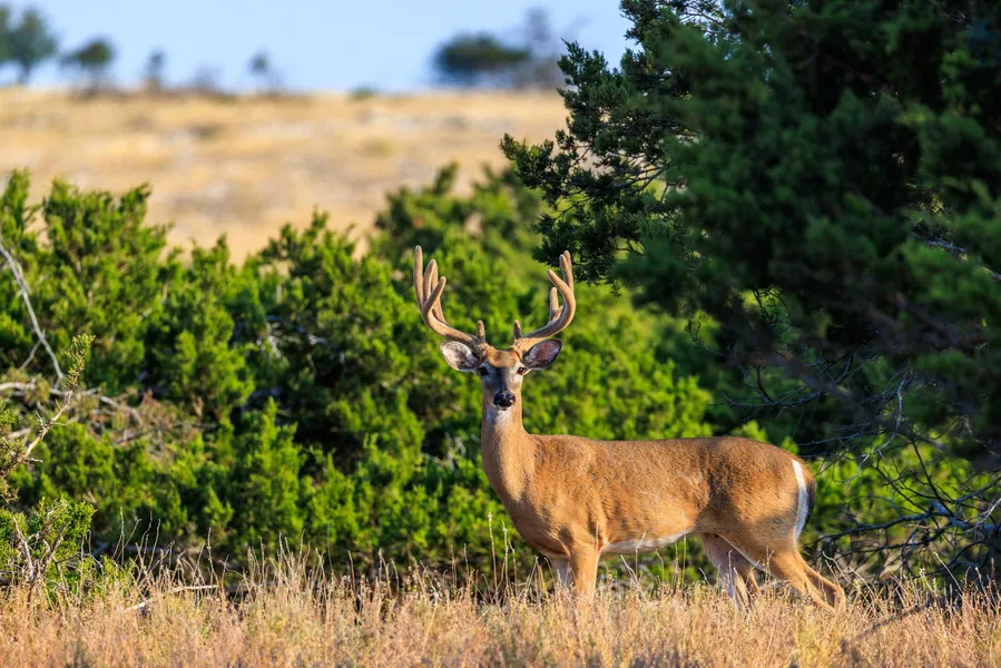 The ranch's varied terrain includes 60 acres of high fencing, creating an ideal haven for diverse wildlife. Enjoy agricultural tax exemptions while exploring the gentle, wooded landscape that harmoniously hosts Axis, Whitetail deer, Turkey, Zebra & Oryx. Functionality blends seamlessly with beauty, boasting four wells and a septic tank.