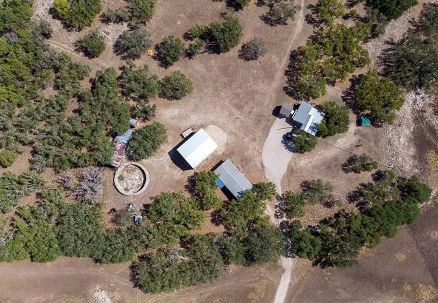 Improvements include a very comfortable and efficient one-bedroom, one full bath main house of 680+/-sf with a very inviting and enjoyable covered deck and porch, a stand-alone laundry/utility room with full bath, and an 828+/- sf two-bedroom, one full bath mobile home to accommodate your guests or to provide living quarters for extended family. Also, a freestanding high roof 30' X 40' metal garage on concrete slab, a nostalgic windmill tower with 30' diameter rock pila (open cistern)both in need of repair, and various outbuildings, sheds, etc.