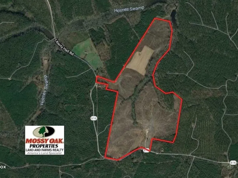 The northern section contains the cultivated field and is bound on the west by a tributary of Holmes Swamp with some wetland hardwoods. The state road frontage of this portion of the acreage is approximately 200 ft in length. Upon the gated entry, a half mile roadway extends to the boundary line running parallel to the field with many hunting paths along the way that lead to the interior.
