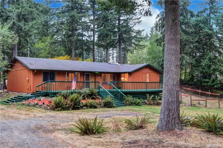 Roomy Rambler situated on 2.1 Acres! Private, long gated driveway leads to Open Concept floorplan rambler w/Master Retreat; 3/4 Bath PLUS 3 bedrooms & full bath, large kitchen opens to dining room w/skylights, lots of windows. Family room w/wood fireplace. Great Hobby Farm or Equestrian capabilities. Great for animals, Gardening, Toys, RV! Fully fenced, separated for multiple animals. Big, open views of the Evergreens & pasture from front deck. 2 Car Detached Garage. Tahoma SD! Min to Amenities.