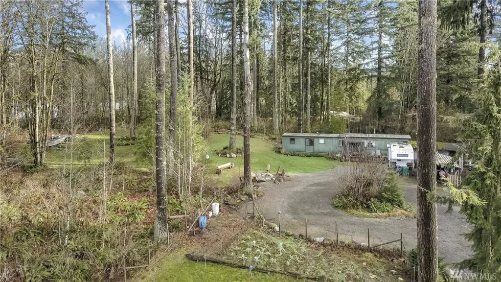 Nestled back off the road and surrounded by fir and maple trees is 3.9 acres. Mobile home to live in while you build your dream home . The shop/party palace (600sqft) is a great spot to work on your favorite hobby or entertain. It also has tons of storage. The garden area is a great spot to grow your own vegetables. The mini orchard has cherry, apple, peach and pear trees. This is a great place to call home. Public access to Lake Joy is just a short walk, bring your paddle board, kayak,canoe