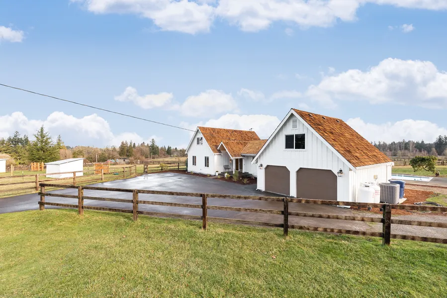 Beautiful Rustic Farmhouse with endless updates sits on 11.7 acres of cross fenced horse property with a completely redone heated, salt water pool. Amazing views of valley and mountain range captivates you from the main floor. Big new windows with abundant natural light and amazing views. Updated kitchen, all new appliances, quarts counter tops, hardwood floor, tile, bathroom, RH vanities in the bathrooms, fir wood trim, fixtures, new roof, new siding and so much more. Barn with 4 stalls has newer roof and electricity and water. Backup generator with 2 propane tanks installed. Endless possibilities. Sale includes 2 parcels Parcel #3521059077 has .75 acres and the home, parcel # 3521059076 has the 11 acres and barn.