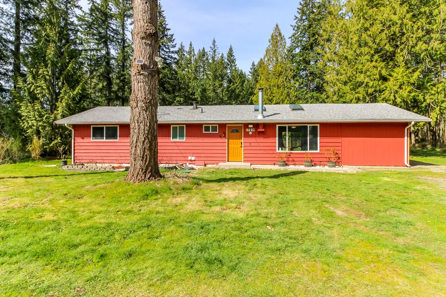 This light and bright 1-level home on a shy 2.5 acres will amaze you! New hardwood floors, new paint, new kitchen cabinets, tile flooring, and new stainless steel appliances, completely updated bathrooms with slab granite tub enclosure! Master with walk-in closet, double sinks and modern fireplace. Home updated with new electrical and pex plumbing! Sit back and relax with nature often with deer visits in your lush backyard, stay warm by the large fire pit area, stargaze at night or do backyard camping! Possible to sub-divide! Home has a split A/C/Heater unit in living area and radiant wall heat in bedrooms, not to mention almost 350 unfinished square feet for potential 4th bedroom, office/den, with its own entrance! An ideal location within 5-minutes to shopping and freeway! A must see!