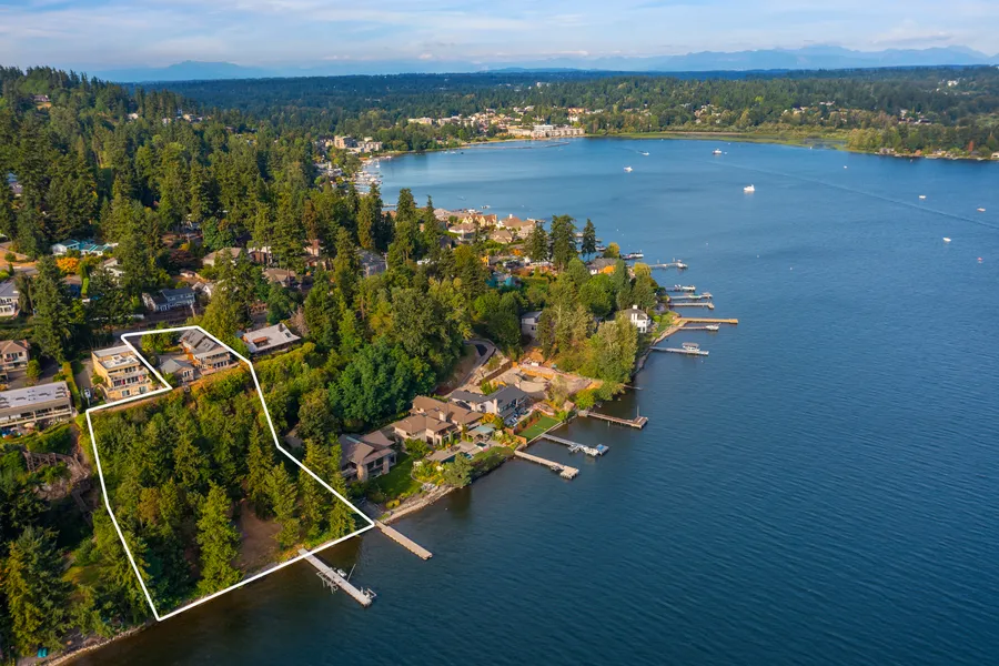 Total seclusion in the heart of Juanita. This property has a rare 220 feet of waterfront and endless possibilities; creating ones own private waterfront estate or a builders dream waterfront lot to short plat for potentially five luxury residential homes or more! Many studies done and available per request. Enjoy southern exposure with stunning panoramic sunrise-to-sunset views of the Cascades, Kirkland, Bellevue, Seattle, Mt Rainier, and the Olympics.