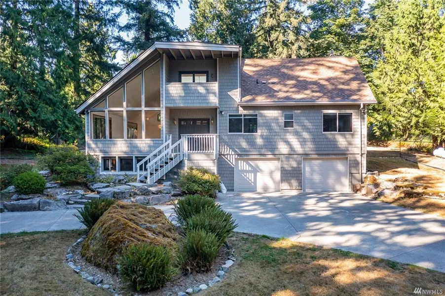 1st time on Market in 35 yrs. Custom-built one owner home. Soaring windows bring fabulous natural light to fill the vaulted ceiling Liv room and Din rooms. Kitchen has table area for eating in attaches to large family room with exit to patio. Main level has 2 bdrms that can be office or guest space shared by a bath. Open staircase leads to Master suite with pvt bath & large WIC. Juliette balcony over front entry is accessed by a perched walkway and looks down on staircase and full view of Liv room, also find a lrg 2nd bedroom and full bath. Lower level has large rm that doubles as a bedroom & adjoining craft/game rm. Lrg storage rm used as a studio and shop lead to the garage. New int & ext paint, new heat pump to keep you cool & warm.