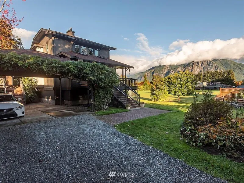 Gorgeous Mt Si View from nearly every room in this fully remodeled home! Master suite on the main level with access to deck, mountain view, and remodeled bathroom that features new shower, vanities, and new flooring. Kitchen remodeled with high end quartzite counters, newer appliances, and refinished hardwoods throughout. Detached shop/gym. 3 decks to enjoy the views, and a level yard & garden. 2 more bedrooms + fully remodeled bathroom upstairs + a loft for an office. Walk to breweries, golf, parks, river and more! Close to I-90 for quick and easy commute to Redmond/Bellevue/Seattle. Upgrades include air conditioning, new roof, wood interior trim, new wood stair railings, built-ins + much more! Don't miss this high-end quality built home!