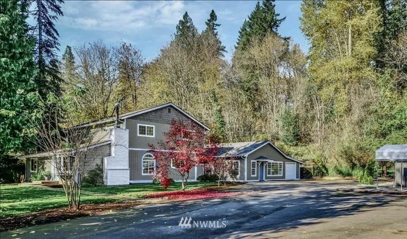 Fully-remodeled home on a beautiful, gated shy acre lot! The main house is a two-story 2772 square foot home with 4 Bedrooms and 2.5 Bathrooms. The second structure is a detached one-level with 1 Bedroom and 1 Bath. It lives large with 904 square feet, a huge walk- in closet, french doors that lead to a private yard space and an attached 2-car tandem garage. Both structures are open floor plans with new paint, hardware, floors, quartz - Everything is like-new. Separate well house/shed, covered storage and carport. Beautiful terraced lot with a seasonal creek, fire pit, RV Parking, A/C, heat pump. Tahoma Schools. Only one mile to Maple Valley Town Square Shopping Center.
