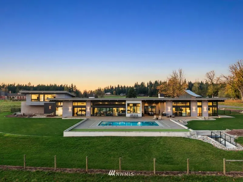 This home is a modern masterpiece and one of the most stunning estates available. Sited on 40 pasture acres with jaw dropping views of Mt. Rainier. Additional 40 acres are available for purchase for 750k to make a total of 80 acres. Immense geothermal heating systems heat the home. Unrivaled commercial grade materials were used to construct this property. Features include multiple nano door systems throughout, top of the line pool, gourmet kitchens, attached luxury guest apartment, fully appointed offices, heated barn with bathroom and RV septic hookup. This estate opportunity comes mostly furnished. Located 1 hour south of Seattle & Bellevue and 45 minutes to crystal mtn. Stunning, private, tranquil & rare best describe this home.