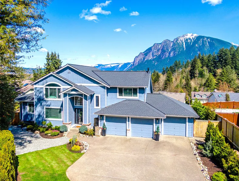 Enjoy front row seats to unobstructed panoramic mountain views that change every day from almost every window. This home is truly one of a kind, surrounded by the cascades located in the coveted neighborhood of Forster Woods. Set back from the street, and situated next to a green belt gives the utmost privacy while still enjoying the benefits of a friendly neighborhood with parks, creeks, and trails. This is PNW living at its finest, along with the convenience of quick access to i-90, which is a fast commute to downtown Bellevue or Seattle. This newly completely renovated 5 bedroom ( 4 upper, 1 on main), 3.5 bathroom is full of natural light, and great for entertaining. With the 15 ft vaulted ceilings, hardwoods throughout, butler's pantry, full wet bar, and home gym, you'll never have to leave your home! MIL suite on the main floor is perfect for family or out-of-town guests. Big Picture Anderson windows and custom sliding doors enhance the mountain views and make you feel like you are part of the outdoors. The low maintenance Trex deck overlooks the in-ground fire-pit, surrounded by boulder stadium seating and is the perfect setting for roasting marshmallows and relaxing underneath the patio lights. The boulder water fall feature provides balance and sound to the backyard and enhances the feeling that you are surrounded by nature.