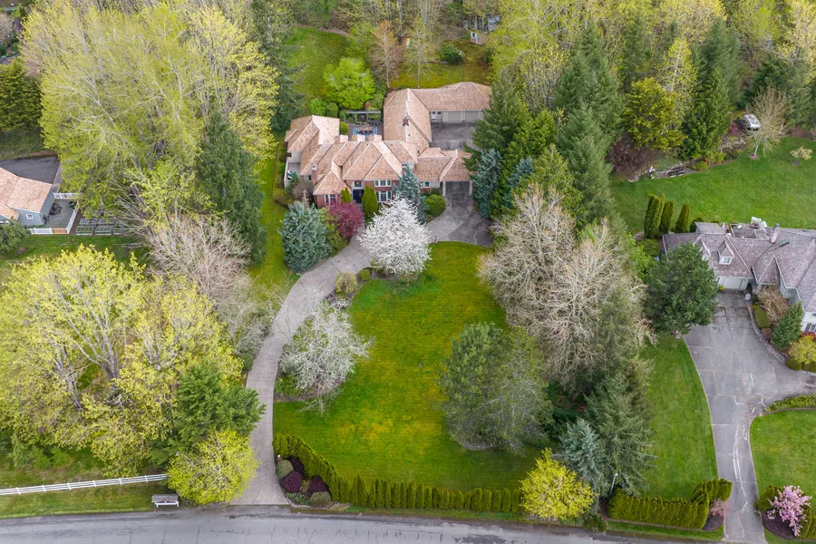 Situated on 1.5 acres in coveted Broadhurst Estates, this exceptional residence offers privacy and versatility. The 4,120 square foot main floor includes a primary bedroom suite, well-accommodating one level living. A second bedroom suite in another wing offers quality accommodations for an au pair, elder family member, adult child, or perhaps a recording studio or other unique use. With a total of six finished rooms between two floors, arrangements are quite flexible. Several rooms have French door access to the central courtyard, including family and recreation rooms, blending indoor / outdoor space for excellent entertainment options. Formal entry, formal dining, office space, gourmet kitchen, ample storage including temp-controlled wine closet, garage space for 3 vehicles, and more. This home is a must see!