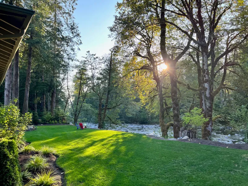 Truly extraordinary and rarely available, you're invited to discover the undeniable magic of Pacific Northwest living at this remarkable, riverfront retreat with nearly 150' of open frontage, located in one of the most stunning settings the region has to offer. Cited mere steps from the water, this idyllic home enjoys grandfathered proximity to the incredible North Fork Snoqualmie River, resulting in an enchanting experience one must see to believe. Recognized as one of the areas most desirable lots, you will find this home closer to the river without nature blockage, providing you a true riverfront experience neighboring homes cannot offer. Two lots included, nestled peacefully on over an acre of clear land, no detail of this unique property has been overlooked. Enjoy complete clarity and peace of mind knowing that this picturesque dwelling is located outside of the flood zone, providing endless possibilities for future configuration both inside and out. Add on for additional space or appreciate the ease of one level, ranch style living. Additionally, convenient onsite river access allows for myriad outdoor activities, including Spring rafting trips as well as leisurely Summer tube floats and swimming. Receiving a complete remodel from top to bottom, no expense has been spared in elevating this river retreat to the highest levels of luxury and convenience. Upgrades include new electrical, plumbing, and HVAC systems, as well as recently replaced windows, roof, and foundation. Bright, LED illumination can be found throughout, along with Lutron Smart Switches for added convenience. Defined by unrivaled finishes and custom fixtures, each room within this sprawling, single-level Rambler has been curated and designed to compliment the tranquil captivation of the adjacent, flowing river. Natural stacked stone accents, bespoke trim work, and hand-crafted details can be seen from every vantage. Beautiful, custom-built cabinetry, high end appliances, generous preparation space, copious storage, and integrated lighting combine to create a sensational kitchen perfectly poised for everyday living as well as year-round entertaining. Open and collaborative, each space contributes to the easy flow and repose of such a delightful floor plan while maintaining a sense of unique separation when necessary. Immaculate, Travertine tile and gleaming flooring work in tandem to provide a sense of intentional connection throughout. In the Owners Suite, enjoy resplendent solace exuded by a sensational feature wall and cozy, electric fireplace. In the ensuite spa-inspired bath, relax in the most enviable, jetted-tub imaginable featuring magnificent views of the nearby river flowing just outside the large, picture window. Exquisite tile work, radiant heated floors, open rain-inspired shower, generous vessel sinks, and a convenient, connected laundry room round out the unparalleled lifestyle afforded by such a sought-after retreat. Outside, meticulously designed, exquisitely landscaped grounds continue the intentionality of this incredible, river-inspired oasis. Lush, mature foliage combined with professionally procured verdure create a masterpiece setting uniting both modern aesthetic and the awe-inspiring power of Nature as one. With Mt. Si as the perfect backdrop, views of nearby Fantastic Falls, and close proximity to North Bend, location and convenience are nearly unmatched. Gracious, refreshed, and eager to meet its new steward, welcome home to the epitome of riverfront luxury.