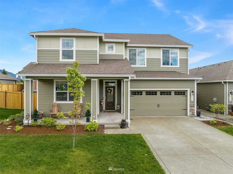 Surprising Enumclaw home w/ community, comfort & homey style. 2019 build feels new due to amazing pride of ownership. Open, airy layout w/ lots of sunlight, great flow, tranquil feel. Inspired kitchen: sleek stainless, white quartz, big island & walk-in pantry. Welcoming living room w/ unique corner fire & hand-scraped style floors. Large bedrooms with two dual-vanity bathrooms! Owners suite has soaking tub, glass-surround shower w/ delightful tile. Unbelievable upstairs game space. Manicured & landscaped yard w/ enclosed cedar fence for privacy. Lawn shed included, w/ flourishing garden in raised beds producing strawberries and blueberries. Covered concrete patio. Neighborhood playground nearby, plus great schools.