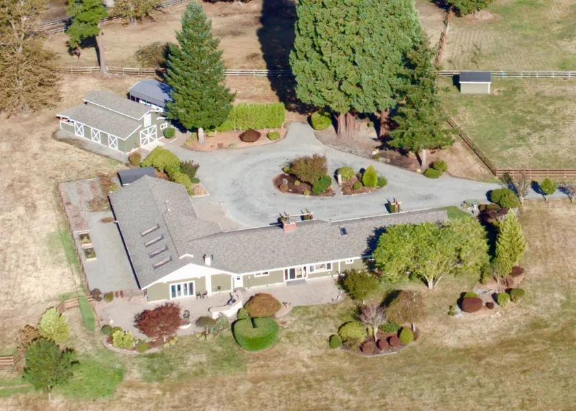 Ranch style 4,412 square foot remodeled rambler on gated 5.15 acres features 4 bedrooms, 4 baths, and amazing Mt. Rainier views. Rich wood accents present PNW feel throughout home. Includes 1,120 square foot pool room with in-ground pool and new pool heater. Gracious bedrooms have adjoining bathrooms and custom built-in wardrobes. Primary bath with 7' massage tub, heated floors, and walk-in shower with 2 shower heads is a delight. 4-car attached garage is heated/insulated welcomes all your toys and hobbies. 4 stall barn has storage loft and property is fenced and ready for animals. Outside home boasts of 1,700 square foot patio with outdoor kitchen and gas fire pit. Home features updated siding and fresh paint on entire home and newer roof.