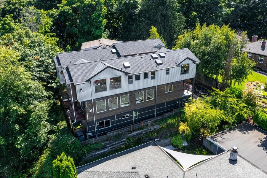 Discover privacy and luxury in this custom-built home with breathtaking Puget Sound views. Nestled above 24th Ave NW, it features a chef's kitchen with Sub-Zero fridge, Viking range, wine fridge, and natural gas grill. Indulge in the radiant floor heating, central A/C, 3 gas fireplaces, rain head shower with 8 body sprayers, privacy windows, and large soaking tub. The lower level surpasses expectations with an inviting family room, gym, and mini-bar complete with kegerator, fridge, and dishwasher. Technology around every corner with whole-home audio, wired security system, smart door lock, thermostat, and outdoor lights. Pamper your pets with pet-grade turf in the fenced outdoor area. 2 off-street parking spots with ample street parking.