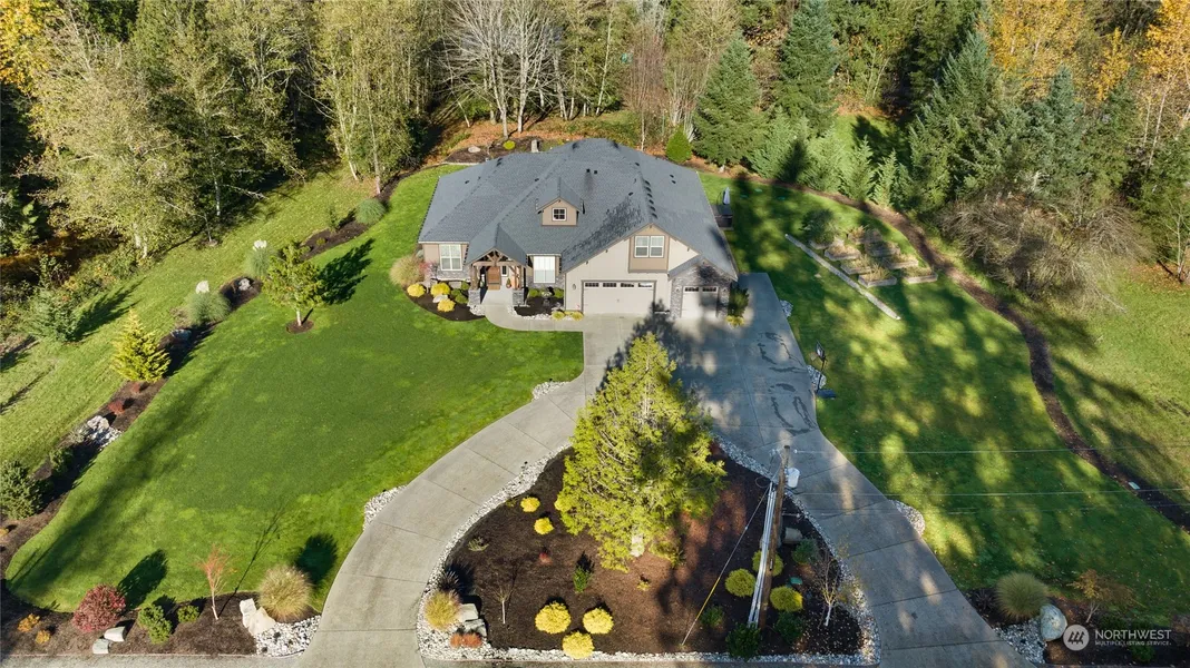 Rare Custom 5 Bedroom, 5 Bath Gorgeous Gated Rambler living in Hobart! Better than new construction, all the extras are done! Shy 4 acre lot, extensive landscaping, lighting, sprinklers, custom concrete. Covered Patio w/gas Fireplace. Inside this Design inspired Modern NW Home find Vaulted Ceilings, Great Room w/ built ins that flow to a Dreamy Chef's Kitchen w/custom Oversized Island. Extensive cabinetry, like new appliances & Gorgeous Lighting! Custom Hardwoods run thru entire home! Primary Suite features custom floor to ceiling tile shower, Huge Walk-in closet & exterior door to private Hot tub! 4 additional Bedrooms, w/ 2 having Private ensuite Bathrooms w/ Custom tile. Amazing location for commuting, 4-corners and Tahoma Schools.
