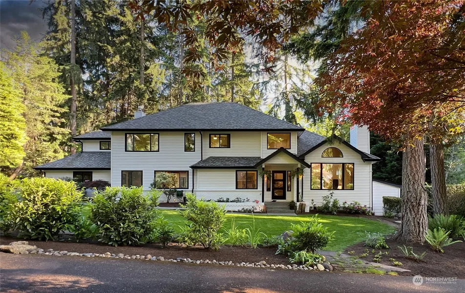 Beautifully updated & impeccably maintained home located in the highly desirable Hollywood Hills area of Woodinville. This home lives very private & has been updated top to bottom. 4 bedrooms, 2.5 bath w/ all new/recent: 50yr roof, gutters, windows throughout, skylights, interior & exterior paint, floor coverings, kitchen countertops, sinks, appliances, radiant heat floors in 2 bathrooms, landscaping & hardscaping, garage doors & tracks. Stunning new 640 sq ft Timbertech deck w/ cable railing & new hottub, also very private & offer a stunning, elevated view of your own private nature sanctuary. Perfectly located on a quiet cul de sac in Northshore School District, close to Woodinville Wine District & all amenities. RV parking, 3 car garage